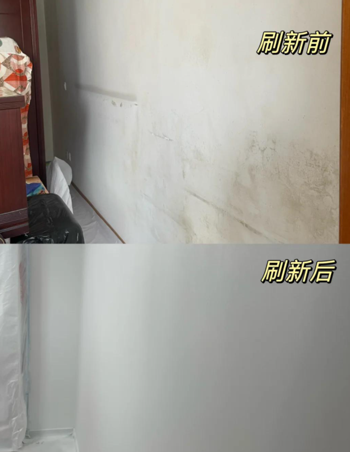 "住了20年的老房子,墙根返潮发霉、墙皮剥落长白霜的问题越来越严重,每年都要花钱修补。今年用了贵司的修缮宝套装,按照说明先刷金色底料再涂银色面料,施工后墙面干爽透气,连木地板踢脚线附近的潮气都消失了!现在3个月过去,墙根洁白如新,再也没出现空鼓脱落,终于不用年年为烂墙根头疼了!"